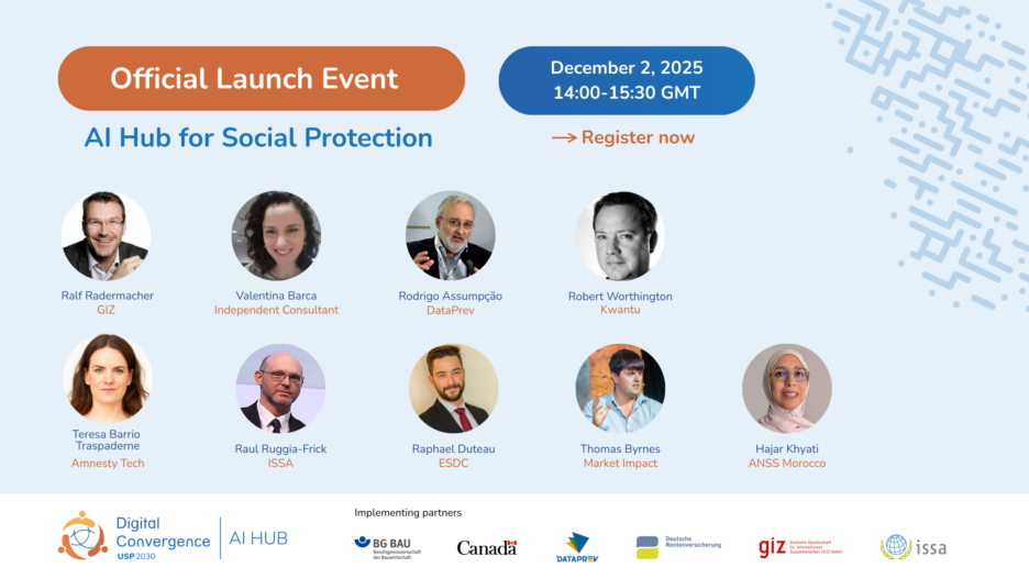 This webinar was the official launching event of the AI Hub for Social Protection, an initiative created in June 2025 under the Digital Convergence Initiative (DCI). The goal was to make the initiative known, set expectations for governments about the advisory services, and spark conversations around responsible AI innovation in the sector. By bringing together policymakers, digital social protection and technology experts from government agencies, civil society, and international organizations, the webinar explored what responsible, innovative, and sovereign AI adoption in social protection means, shared insights from first knowledge products, and reports from AI in-country implementations. An expert panel built on these inputs for further exploring how to navigate benefits and risks of AI, ending with practical policy and implementation recommendations.